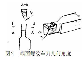 (2)端面矩形螺紋車刀的裝夾方法:端面矩形螺紋車刀的主切削刃必須與工件中心等高,且車刀的中心線必須與軸心線平行。